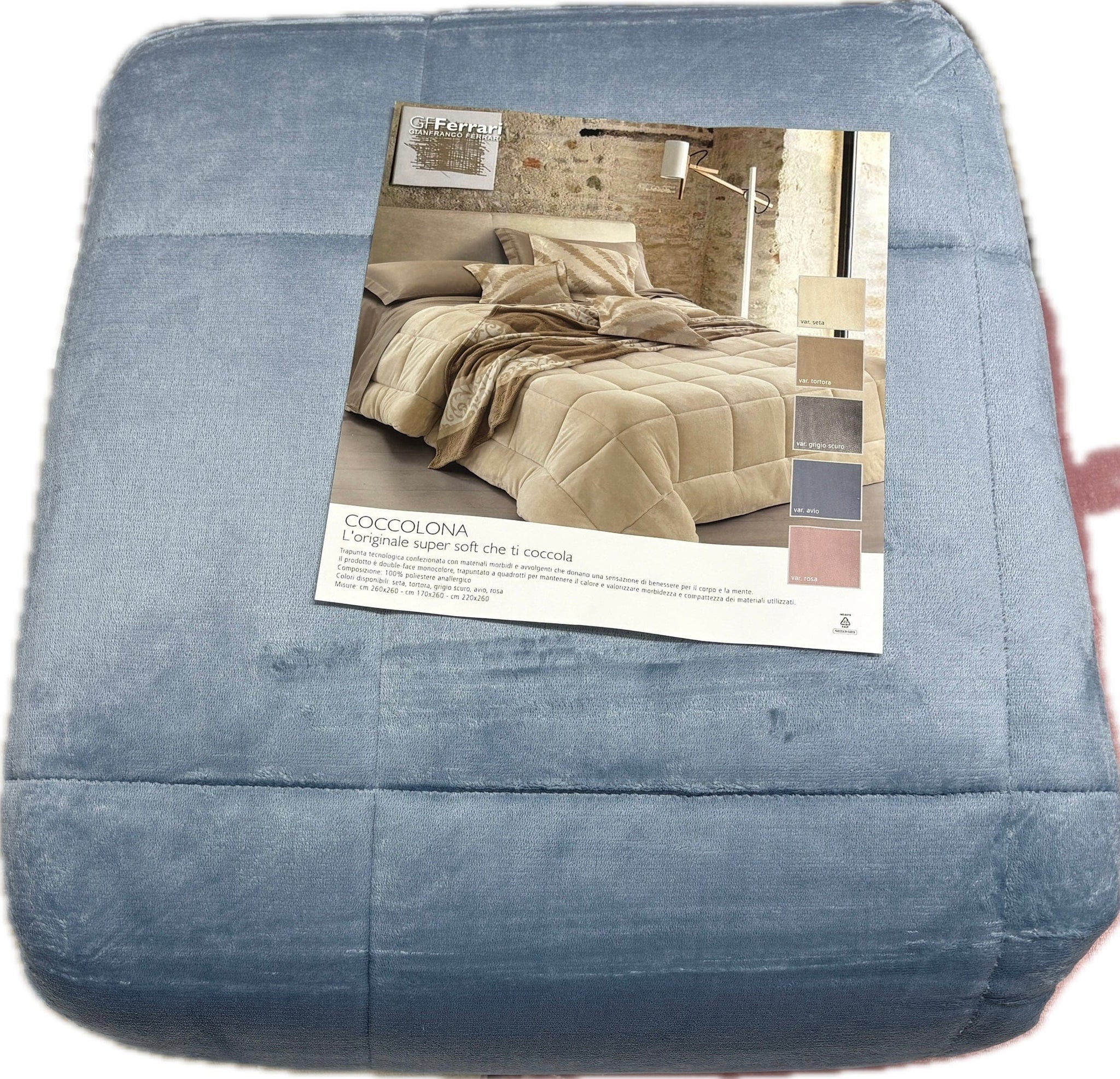 Trapunta a pelliccia pelosa calda ecologica pelosa disegnata di alta qualità unita. Tessuto superiore è in microfibra stampata di poliestere mano pesca morbida, tessuto inferiore è in microfibra in poliestere tinta unita anallergico. Imbottitura in poliestere coperta 100% grossa pelliccia. Prodotta da GF Ferrari made in Italy. Colori così vivi e un tessuto così morbido da battere qualsiasi piuma d'oca esistente.