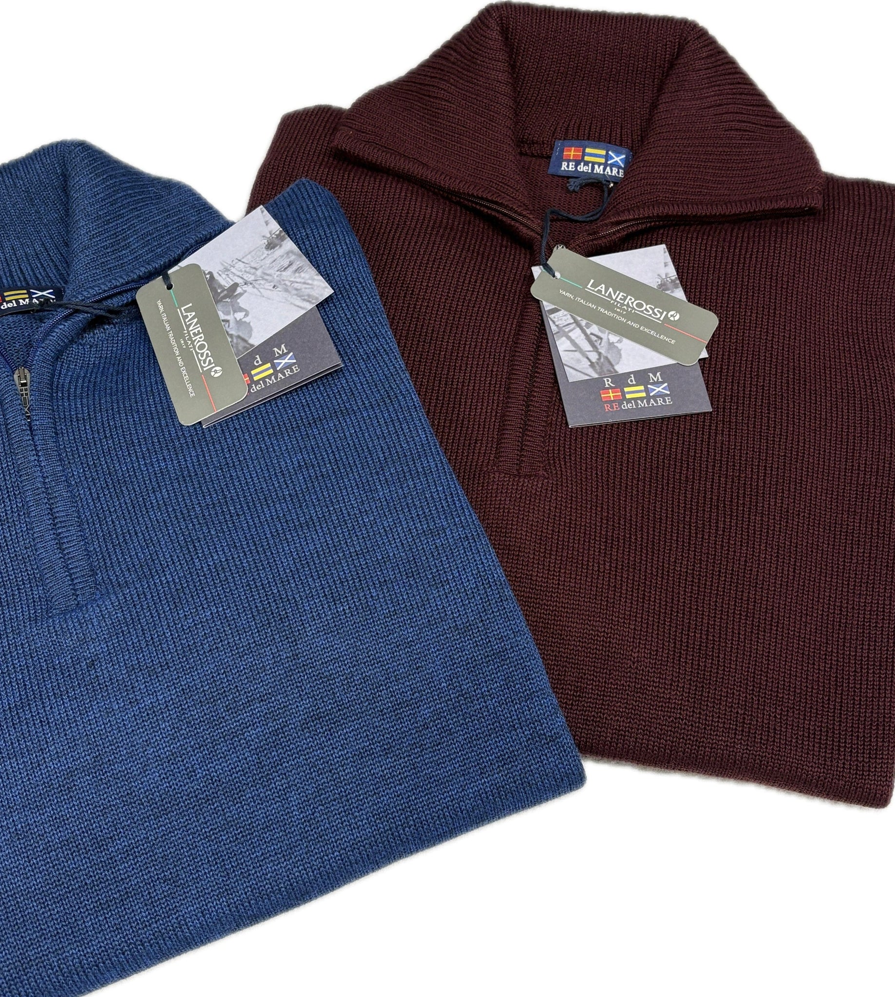 Maglione uomo Lana mezza zip Re del mare made in Italy T.unita classico