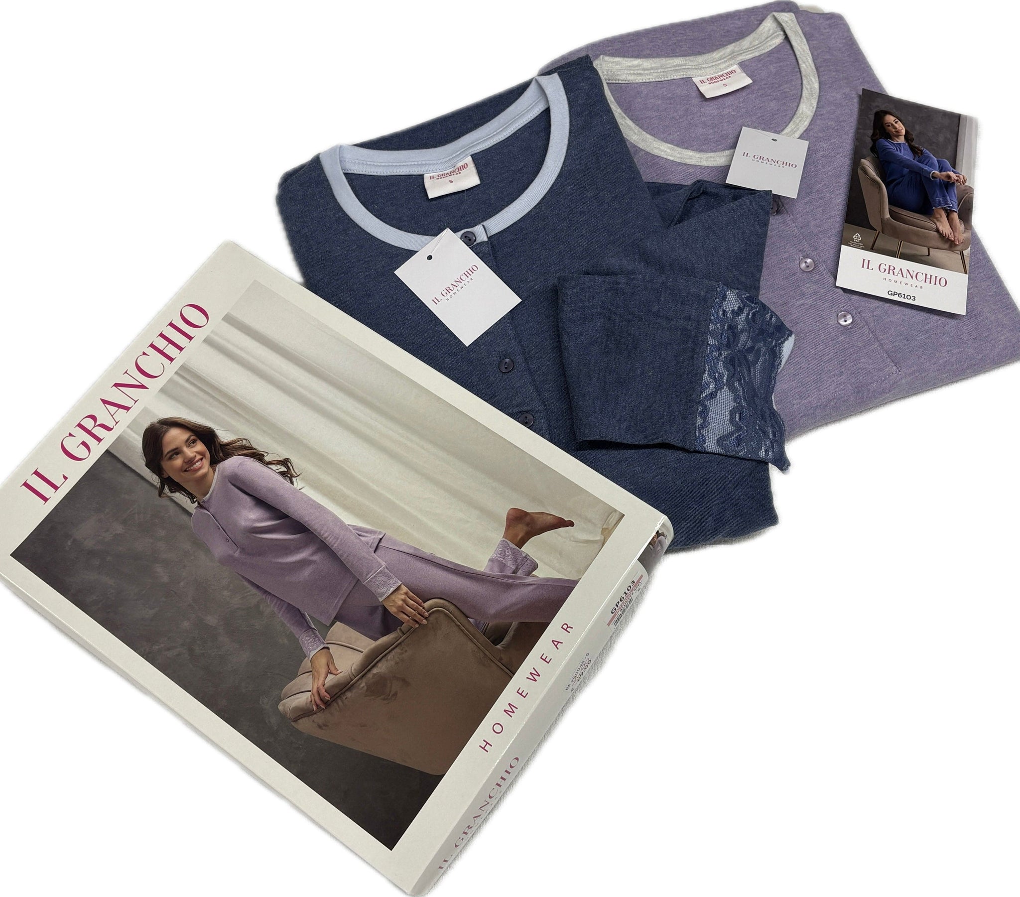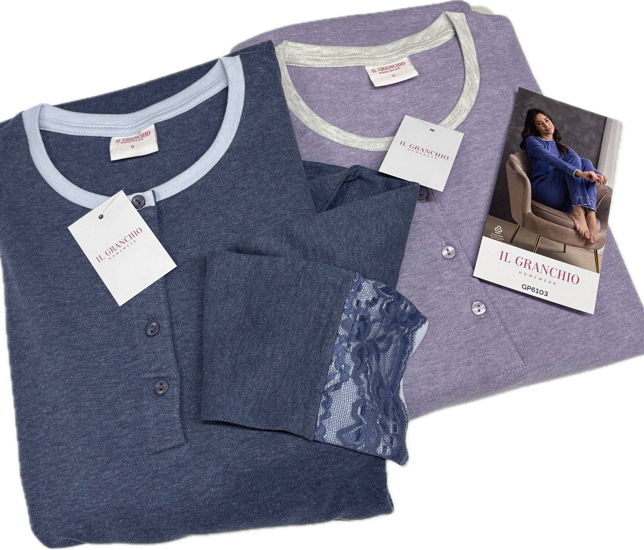 Pigiami da donna serafino Il Granchio Homewear manica lunga e gamba lunga, in puro cotone caldo 100%, importato da Coloriamoc srl (BT) Italia , non inseguire la qualità indossala. Vestibilità italiana, taglie comode, la   maglia è a serafino, un classico molto comodo.