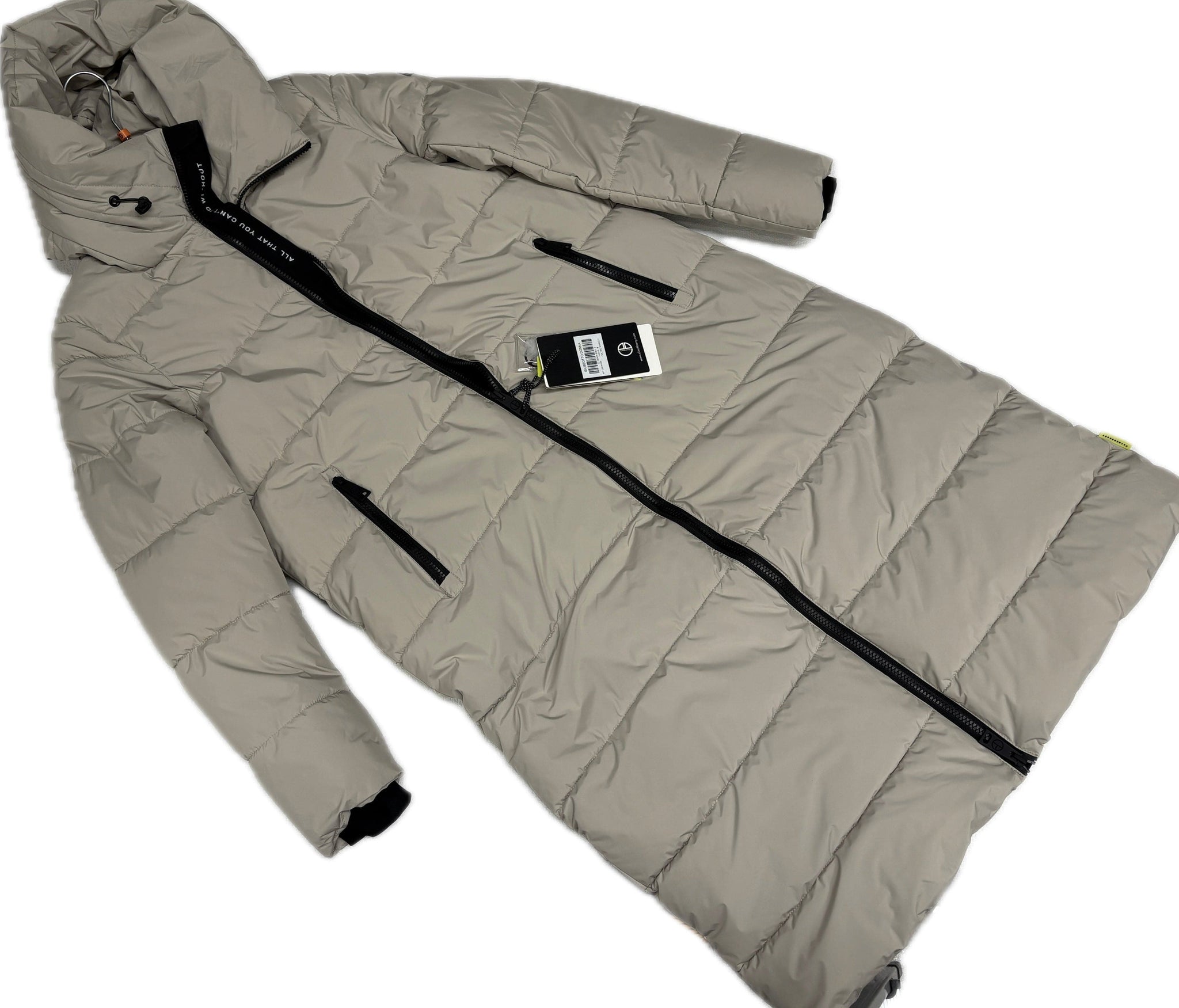 Giaccone da donna super tecnica e lunghissimo più di 1 metro in eco-piuma sintetica anallergica morbida imbottita da uomo, in 100% polliamide impermeabile , con il cappuccio. prodotte da C.B. Fashion srl, azienda Italiana di Roma, leader nell'abbigliamento sportivo e casual giovane e dinamico.