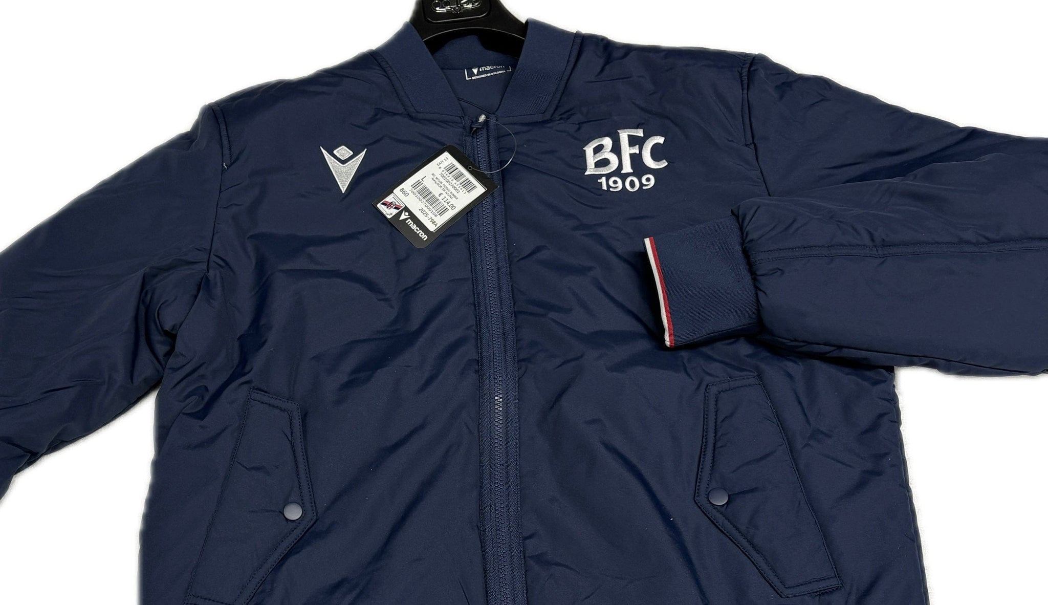 Bomber BFC M24/25 ATH PADDED BOMBER BLK del Bologna FC 1909 Ufficiale, In 100% poliestere, disegnato e importato da MACRON SPA Azienda leader nel settore sportivo, ama i dettagli che fanno la differenza, come l'attenzione al prezzo e la selezione dei materiali, con cappuccio effetto bomber trapuntato primaverile.